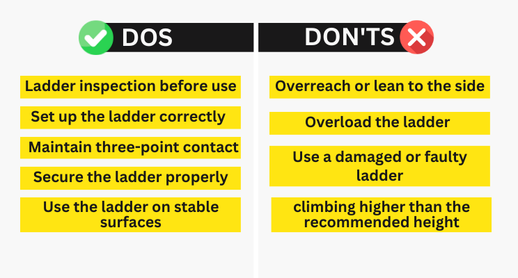 To ensure your safety while using a ladder, it's important to follow these dos and don'ts: