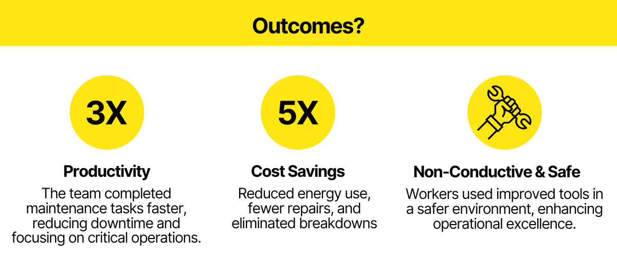 - 3X Increase in Productivity: Maintenance tasks were completed faster with less downtime, enabling the team to focus on critical operations.